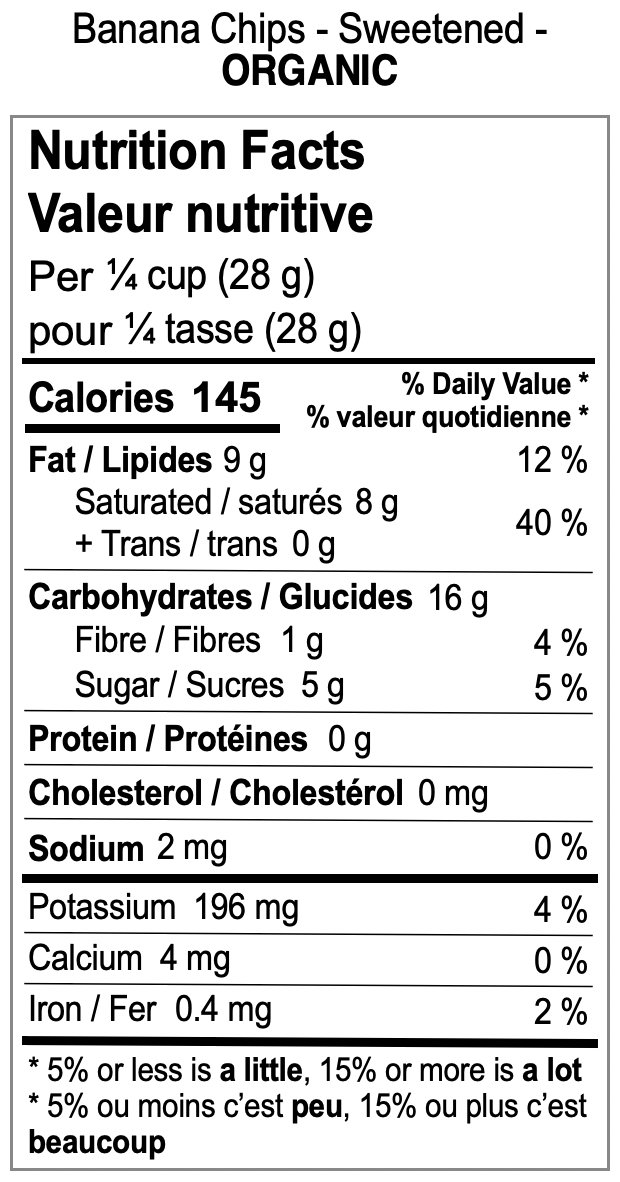 Organic banana chips are a sweet way to add a good dose of dietary fibre to your diet, and provide iron and potassium.
